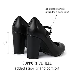 1. Fit & Sizing – Runs Slightly Small, Size Up for Best Fit These Mary Jane pumps for women run slightly small; we recommend ordering half a size up for a true fit and all-day comfort. The round toe design gently hugs your feet, ideal for work, parties, or weddings. 2. Classic Mary Jane Design with Modern Flair These round toe chunky heels combine the timeless elegance of classic Mary Jane shoes with a modern update. With their feminine flair, these block heel pumps are a must-have for every stylish woman. 3. Comfortable Cushioned Insole & Arch Support Featuring a padded insole and ergonomic arch support, these dress shoes for women provide all-day comfort and stability, making them perfect for long hours on your feet. 4. Stable & Stylish Block Heel The mid-high chunky heel provides confident height while maintaining balance. The durable non-slip sole keeps you steady on office floors, city streets, or party dance floors. 5. Adjustable Strap & Versatile Style for Any Occasion The adjustable Mary Jane strap offers a secure, custom fit and enhances the classic silhouette. These block heel pumps pair effortlessly with dresses, skirts, or pants, suitable for work, weddings, or casual outings.