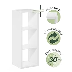 Furinno Cubicle Book Shelf, 3-Cube Bookshelf, Extra Thick Frame Horizontally & Vertically Reversible Bookcase with Open Back, 14.6" x 16" x 44", for Living Room, Bedroom, Home Office, White