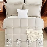 CozyLux Queen Size Comforter Sets Beige - 3 Pieces Box Stitched Queen Bed Set for All Seasons, Soft Lightweight Bedding Sets with 1 Down Alternative Comforter and 2 Pillow Shams