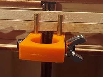 Plastic Petg 3d printed design to allow clamps to stretch and bend to different sizes without breaking. Holds model ship planks firmly to the bulkhead to allow easy gluing, drilling, measuring, tapering, and nailing. Allows for tighter fitting joints between planks. Wingnuts for easy tightening to bulkheads. Fits bulkheads 4-10mm thick. Set of ten (10) clamps. All clamps are shipped pre assembled except for rods. Insert rods into clamp, and glue in place before use. Made in the USA. Support Veteran owned small businesses.