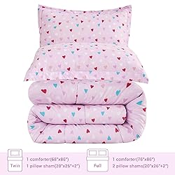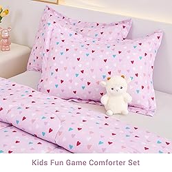 Perfect for Kids: Our twin bedding sets include a soft 1 comforter (68"x86") and 1 pillow sham (20"x26") – 2 pieces twin comforter set with sheets for girls Adorably Cute Designs: Featuring charming, cute purple heart patterns that kids will love, these twin bedding sets add a fun and cheerful touch to girls' bedrooms Super Soft Microfiber: Made from lightweight, durable brushed microfiber material, Viviland girls twin comforter set ensures cotton like comfort and long-lasting use for your kid Convenient "Bed in a Bag": Get everything you need in one bag! This kids' bed in a bag set simplifies bed setup, and the purple heart patterns make kids' room decorating effortless Easy Care & Machine Washable: This girls' twin comforter set is machine washable, dry low in cold water. Viviland kids twin bedding sets will not fade or shrink after many washes