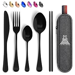 Taplord Portable Travel Silverware Set With Case, Includes 5 Pcs of Travel Utensils With Case, Stainless Steel Flatware Set For Camping, Easy to Travel, Lightweight (Black), Medium, TL-05B