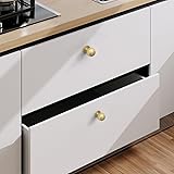 9BUILD 20 Pack 1.2 Inch Brushed Brass Cabinet Knobs - Gold Round Drawer Handles for Kitchen, Dresser, and Cabinets