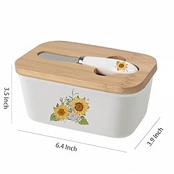 - WAIT FLY Flower Ceramic Butter Dish with Bamboo Lid and Knife, 2 Sticks Butter Dish Butter Container Keeper for Kitchen Countertop, Home Decorative-Sunflower
