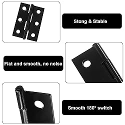 - About Murtenze Murtenze is a trusted brand committed to delivering high-quality products.We strive for excellence and provide customers worldwide with reliable hardware solutions that exceed expectations. Continuous Improvement and Innovation Continuously innovating hardware products to deliver superior functionality and enhanced efficiency, meeting the evolving needs of our customers. Stay ahead of industry trends with our cutting-edge solutions for all your hardware needs. Premium Quality and Reliability Quality comes first. Rigorous testing and strict quality control guarantee our hardware products' durability and performance. Trust in long-lasting satisfaction with Murtenze. Feature: 1. Made of high-quality iron materials, black tone, long service life. 2. Installation of household doors or cabinet doors, windows, cabinets, tool boxes, etc. 3. Butt hinges are tools for cabinet doors; they are very strong but cannot be adjusted once installed. Specification: Overall size: 44 x 32 mm / 1.73 x 1.26 inches Thickness: 1mm Hole diameter: 4mm Color: black Material: Iron The package includes: 16 x Door Hinges 64 x Screws Warmly Note: 1. Colors may vary due to different displays. 2. Please allow for a 1-2mm manual measurement error. 3. Please choose the right size before bidding.