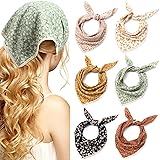 Dingion 6 Pcs Floral Hair Bandanas Head Kerchief Women Bandana Print Chiffon Hair Scarf Triangle Head Kerchief with Ties