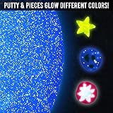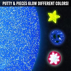 Shimmering blue glow in the dark putty with glow in the dark pieces Stretch it, bounce it, pop it, tear it, and sculpt it! Never dries out! Fun for ages 3+ Includes 1/5 lb (3.2oz) of Genuine Crazy Aaron's Thinking Putty