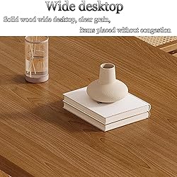 【Premium Solid Wood Construction】: Crafted from high-quality solid wood, our office desk offers lasting durability and a touch of natural elegance to elevate any workspace. 【Ample Space for Organization】: Featuring a spacious tabletop, this desk provides plenty of room to accommodate your laptop, paperwork, books, and stationary, keeping everything organized and easily accessible. 【Ergonomic design for comfort and stability】: This wooden coffee table is specially designed to provide a comfortable surface for your daily activities. The wide desktop offers ample space for placing your essentials 【Creative & Functional Design: Our desk combines style and functionality with its thoughtful design. Whether you need ample storage for files or prefer a minimalist look, this desk offers versatile options to suit your needs. 【 Versatile functionality】: This versatile table can serve as a dining table in your living room, a study desk in your home office, or even a computer desk in your bedroom. Its multi-purpose design makes it suitable for various settings and purposes.