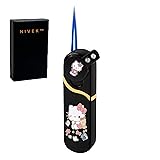 - [FEATURES] Black lighter with rhinestone embellished rocker arm lever with blue flame. Comes with NIVEK trademark gift box.