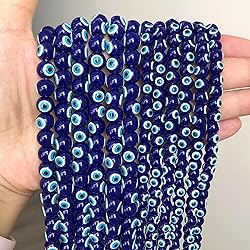 Generic Multicolor Evil Eye Lampwork Beads 6/8Mm Round Glass Beads Loose Space Beads for DIY Jewelry Making Bracelet Necklace Supplies - (Color: Dark Blue/Size: 6Mm About 61Pcs)