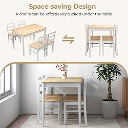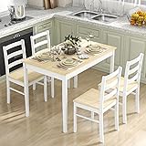 - Tangkula Dining Table Set for 4, Solid Wood, Farmhouse Dinette Set w/Rubber Wood Legs, Compact Dining Table and Chairs Set for Kitchen, Dining Room (Natural+White)