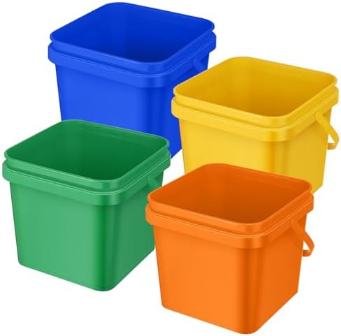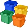 Mifoci 4 Pcs Plastic Bucket 5 Quart Square Cleaning Bucket Utility Small Pail with Handle for House Cleaning Storage Livestock Feeding Car Washing (Yellow,Blue,Green,Orange)