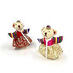 Generic Korean Hanbok Cute Bear Keychains 2 Pack For Gift, Made of Korean Kawaii Tranditional Clothes Key Ring Pendants, Small