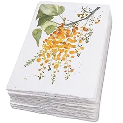 [Artisan Crafted Variety Pack]: Discover the beauty of tradition with our 20-pack of super thick 300 gsm cotton deckled edge paper greeting cards and 150 gsm envelopes, each printed with a flower cover and folded to 5"x7" / 13x18 cm. This set includes 4 different floral covers 5 cards of each design carefully arranged for a balanced and elegant assortment. Skillfully crafted by artisans using techniques passed down for generations in India, this white, cold-pressed textured card is ideal for crafts, light watercolor, acrylic, charcoal, ink, printers or colored pencils. For heavy washes and extensive water use, we recommend our watercolor paper: B0CYY858SL [Archival Quality]: Our acid- and chemical-free deckled edge cotton rag paper is more than just a medium; it’s a canvas for creativity and a keeper of memories. Your creations will endure, retaining their original vibrancy and value over time. Whether showcased on your mantel, the refrigerator, your home studio, or as bespoke stationery, let your art continue to shine beautifully on this natural, artisanal paper [Home Printer Friendly]: Looking for cotton paper for printing? Our handmade deckle edge paper cards are compatible with home printers, offering endless possibilities to make a lasting impression. Perfect for wedding invitations, birthday cards, get well cards, or crafts. For best results, feed one sheet at a time via the manual feed tray. As printer settings and tolerances vary, we recommend testing with a sample first [Practice Art Sustainably]: Create with a clear conscience using our 100% recycled raw-edge cards, crafted from responsibly sourced remnants of the local garment industry. Made tree-free, acid-free, and chemical-free through sustainable production, our deckle edge paper is FSC Certified so your creativity supports a healthier planet [Protecting Our Artisans]: Beyond protecting the environment, we proudly support the artisans who craft our 100% recycled cotton watercolor and deckled edge paper. As a Sedex SMETA Audit Certified facility, we ensure fair wages, safe working conditions, and ethical practices throughout every step of our production process