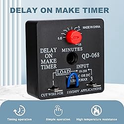 - Upon application of power the time delay initiates. On completion of selected delay period, the load is energized. Timer will reset on power interruption or when thermostat disconnects Model: QD-068Input Line Voltage: 19-288V ACInput Line Frequency: 50Hz/60HzOutput Ratings: 40mA~1.5AOutput Rating Inrush: 15ATime Delay: 0.03 ~10minutes (1.8~600sec.)Terminal or wire connections available