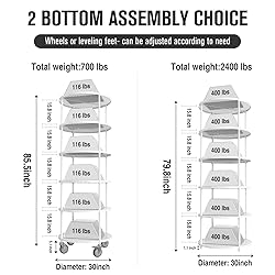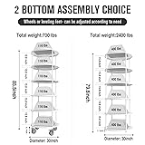 [Heavy-Duty 6-Tier Design] - This large-capacity round storage rack supports up to 400 lbs per tier, with a maximum load capacity of 2400 lbs when evenly distributed. For optimal stability, place heavier items on the base frame. Includes six colorful, waterproof shelf liners that add a vibrant touch while protecting against moisture damage. [360 Degree Access] - The round design ensures easy access to all items from any angle, which can make better use of corners and irregular spaces in limited space, suitable for placement in the corner or middle of the room, increasing flexibility of use. Compared with other shapes, round storage racks are visually softer and more dynamic, improving safety and space efficiency. They have no sharp edges, reducing the risk of accidents, and are very suitable for families with children or pets. [Durable and Sturdy Construction] - Constructed from heavy steel with superior rust and oxidation resistance, this wire rack is built to last. The NSF-certified design guarantees safety and reliability, making it a durable addition to both home and office settings. The sleek, modern look complements any décor, enhancing the functionality of your bathroom, pantry, garage, office, or balcony. [Adjustable and Versatile] - Each shelf adjusts in 1-inch increments to accommodate items of various sizes. The top bar can be split to create additional shelves, offering flexible storage options for décor, plants, books, and collectibles. The unique circular form provides a balanced and harmonious look from multiple angles, enhancing visual interest and adding a modern touch to any space. [Easy Assembly] - Assemble quickly in just 15 minutes with detailed instructions and no tools required. If you encounter any missing parts or assembly issues, our customer support is readily available to assist through the buyer's message.