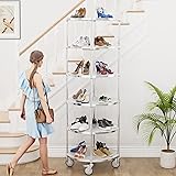 [Heavy-Duty 6-Tier Design] - This large-capacity round storage rack supports up to 400 lbs per tier, with a maximum load capacity of 2400 lbs when evenly distributed. For optimal stability, place heavier items on the base frame. Includes six colorful, waterproof shelf liners that add a vibrant touch while protecting against moisture damage. [360 Degree Access] - The round design ensures easy access to all items from any angle, which can make better use of corners and irregular spaces in limited space, suitable for placement in the corner or middle of the room, increasing flexibility of use. Compared with other shapes, round storage racks are visually softer and more dynamic, improving safety and space efficiency. They have no sharp edges, reducing the risk of accidents, and are very suitable for families with children or pets. [Durable and Sturdy Construction] - Constructed from heavy steel with superior rust and oxidation resistance, this wire rack is built to last. The NSF-certified design guarantees safety and reliability, making it a durable addition to both home and office settings. The sleek, modern look complements any décor, enhancing the functionality of your bathroom, pantry, garage, office, or balcony. [Adjustable and Versatile] - Each shelf adjusts in 1-inch increments to accommodate items of various sizes. The top bar can be split to create additional shelves, offering flexible storage options for décor, plants, books, and collectibles. The unique circular form provides a balanced and harmonious look from multiple angles, enhancing visual interest and adding a modern touch to any space. [Easy Assembly] - Assemble quickly in just 15 minutes with detailed instructions and no tools required. If you encounter any missing parts or assembly issues, our customer support is readily available to assist through the buyer's message.