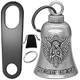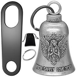 Guard Your Faith and Happiness: The guardian angel motorcycle guardian luck bell is designed to bring good luck and protect riders from road gremlins, making it a perfect talisman for any motorcycle enthusiast. "Never Ride Faster Than Your Guardian Angel Can Fly, Ride Safely Love You" is engraved on the guardian angel luck bell for motorcycle. With guardian angel as your travel companion, you can feel an added sense of safety and security on the road. Most cost-effective Set: The set includes the guardian angel motorcycle guardian luck bell, two keychain ring accessories, a motorcycle guardian luck bell hanger, and a velvet pouch, offering everything you need for easy attachment and safe storage. Wide range of uses: The guardian angel motorcycle bell for bikers not only can be hung on motorcycles and bicycles but also on keys, backpacks, doors, cars, etc. The two keychain rings give you a more convenient option for everyday use. The guardian angel luck bells for motorcycles will guard you anytime and anywhere and bring good luck. High-Quality Material: Crafted from durable, high-quality metal, this guardian angel gremlin bells for motorcycles is built to withstand the elements and provide long-lasting protection and charm. Thoughtful Gift: This guardian angel luck bell for bikers makes a meaningful and thoughtful gift for bikers, whether for a birthday, holiday, or as a token of good luck for their journeys. Whether it's for a family member, friend, or colleague, this guardian angel motorcycle gremlin bell shows that you care and serves as a token of protection and good luck. Elegant Velvet Pouch: The included velvet pouch not only adds a touch of elegance but also provides a convenient way to store and protect the guardian angel motorcycle bell when not in use, ensuring it stays in pristine condition.