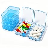 6 PCS Small Pill Box, Tiny Pill Case,Mini Clear Plastic Storage Containers Cute Travel Pill Organizer Case Portable for Pocket Purse Briefcase (Blue)