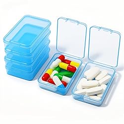 - Why Do We Need Mini Pill organizer?· Small medicine box every day or every week. Don't worry about that the pill box is too big to carry.· Very light and small, convenient for you to carry anywhere.· Remind you to take the right medicine and dosage at the right time every day.· Not only will patients feel better if they take medicine more continuously, but also the caregivers will be relieved!· Care for the elderly and forgetful people.· The mini pill container can hold jewelry, earplug,small candy, gum and more. Satisfy different needs to carry all kinds of small items.· With a semitransparent plastic lid, it is easy to distinguish the medicines without opening the lid.Warm Tips:1. Please wash the small pill boxes before and after use with mild soap and water.2. Please let the small pill organizers air dry before storage.3. Please do not wash them with a dishwasher.4. Please keep out of the reach of little children and pets.Details:·Material: Food Grade PP , BPA-Free·Total Size: 2.17 x 1.38 x 0.5 inches·Quantity: 6 pack