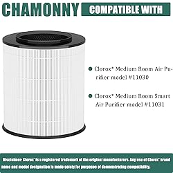 COMPATIBLE WITH: 12030 medium room replacement filter compatible with Clorox 1,000 Sq. Ft. Medium Room Air Purifier model # 11030 and Clorox 1,000 Sq. Ft. Medium Room Smart Air Purifier model # 11031 ADVANCED AIR CLEANING TECHNOLOGY: H13 True HEPA 12030 medium room replacement filter effectively captures up to 99.97% of airborne particles from your indoor air such as dust & lint, dust mites debris, mold spores & pollen, pet dander, PM 2.5 & exhaust particles and more REDUCES ODORS: The 12030 Clorox Medium Room Replacement Filter builds on our trusted legacy by helping you protect your family from allergens, pet dander, dust, smoke, smoke & smog, harmful toxins, VOCs, paint fumes, chemical pollutants and more TARGET AUDIENCE: 12030 Filter Replacement is made of 3 stage 360° filter delivers 360° air purification by capturing particulates in 3 filters: a pre-filter, H13 True HEPA filter and Activated carbon filter. 12030 medium room replacement filter is essential for households with Children, Seniors, Pets, Allergy, smokers and Asthma sufferers SPECIFICATIONS: Package of 2 12030 medium room replacement filters. Recommended the replace every 6 months or depends on usage