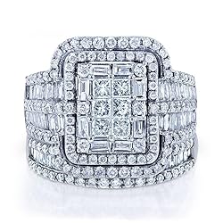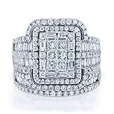 925 Sterling Silver Wedding Set - 3ct Cut Cubic Zirconia Halo Ring, Foldable Wedding Set, Multi-Row CZ Diamond Ring, Eternal Engagement Ring, Size 10