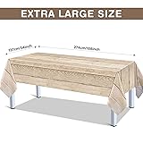 - Features: Protect tables from stains and scratches: The waterproof wood looking tablecloth can keep your table from the stains of pilled milk, juice, or soda and scratches from tableware, like dining knives and forks, so you can choose them with confidence. Multiple functions: These rustic wood tablecloths are designed with vintage patterns, aim to create warm party atmosphere, attractive decorations for western, barn, cowgirl or cowboy themed, birthday, wedding, baby shower, graduation, Thanksgiving day, Halloween or other rustic style parties. Specification: Material: plastic Size: approx. 54 x 108 inches Color: light wood grain Package includes: 6 x Light wood grain tablecloths Warm notes: Manual measurement, please allow slight errors on size. The colors may exist slight difference due to different screen.