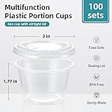 AOZITA 100 Sets - 4 oz Portion Cups With Lids, Jello Shot Cups, Small Plastic Containers, Airtight and Stackable Souffle Cups