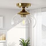 VONLUCE Industrial Semi Flush Mount Ceiling Light, 8.3" Ceiling Light Fixture with Clear Glass Shade, Farmhouse Lighting for Hallway Kitchen Bedroom Entryway, Brushed Gold Flush Mount Light Fixture