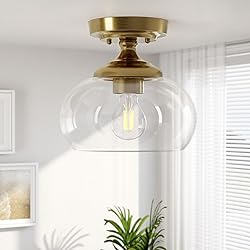 Modern Ceiling Light: Vonluce's semi flush mount light blends clear glass shade with a brushed gold metal canopy, adding a timeless charm to any interior style, from farmhouse to chic modern Ceramic E26 Bases: The standard E26 bases of our ceiling lighting fixture accommodate bulbs up to 60W and are compatible with dimmer switches for precise brightness control (bulbs and switches not included) Glow Anywhere: With its clear glass shades, our flush mount light fixture emits warm and bright illumination, creating an inviting atmosphere in bedrooms, living rooms, kitchens, entryways, or hallways Effortless Installation: With the included mount kit and clear instructions, setting up this hallway light is a breeze. Whether installing on a flat or sloped ceiling, you'll have it up and running in no time once the wiring is prepared Strong Support: Crafted from sturdy metal and durable glass, our flush mount ceiling light is designed to bring lasting brightness and enhance your living experience for years to come
