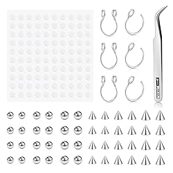 ✿[Metiral] These fake face piercings are made of surgical stainless steel. Nickel-free and lead-free. Could be long time wearing ✿[Package] 3pcs fake nose ring hoop, 3pcs fake septum nose ring, 48pcs balls, 1 sheet self-adhesive sticker(100pcs) ✿[Size]: fake nose ring inner diameter : 5/16"(8mm); fake eyebrow rings piercing: 3mm, 4mm ✿[Using] Surgical steel fake piercings can be used as fake nose rings, fake septum piercing, fake lip ring, fake snake bites, fake eyebrow piercing, etc. ✿[Fashion Fake Piercing Jewelry] These fake piercings for women men are simple and elegant for daily jewelry