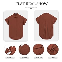 Womens Button Down Casual Shirts Cotton Short Sleeve Blouses Solid Summer Tops with Pocket