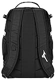 Bat Sleeves: Store up to 2 bats or use as a water bottle pouch. Mizuno Aerostraps : For maximum comfort carrying all of your gear. Padded Back: For optimum comfort. Ventilated Footwear Storage Compartment: Separates shoes from rest of bag to protect and aerate your footwear. Large Area for Embroidery: Makes adding personalization or your team's logo easy.