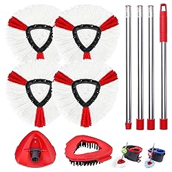 Mop Heads Replacements Complete Combo for O-Ceda,4 Pcs Red Machine Washable Microfiber Spin Mop Refills Replace Heads,1 Scrub Brushs,1 Base,1 Set Handle,Spin Mop Replacements for Tub and Tile Cleaning