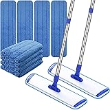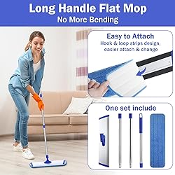Microfiber Mop Set: you will get 1 set flat mops for floor cleaning, each set is equipped with 4 washable replacement pads, so you totall 4 pieces replacement pads and 1 flat mop Clean With Ease: our microfiber mop floor cleaning system has a large base about 18 inches, you can clean larger area with less effort; It is suitable for indoor and business use, like home, cafe, yoga studios, stadiums, offices and schools, and is ideal for moving dirt, dust and hair Adjustable Handle: our commercial mop for floor cleaning are designed with 3 section metal pole, and the height can be adjusted from about 32 to 47.2 inches, which is ideal and practical to match your needs, you can adjust the height as you need Humanized Design: our flat mop for hardwood floor has 360 degree rotation head, suitable for cleaning furniture, cabinets and other hard to reach areas like under sofas and walls; The mop handle is made of stainless steel, and the head is made of solid aluminum alloy, supporting you for a long time Machine Washable Replacement Pads: the wet and dust mop have washable replacement pads; These floor mop pads are reusable, can be cleaned, refilled, and replaced, can be easily attached to the mop head, and can be removed and cleaned quickly and easily