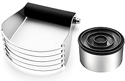 - * COMMERCIAL GRADE STAINLESS STEEL: Not all Stainless Steel is the same and we use Commercial Grade Stainless Steel. The blades won't bend or rust. * LARGE DOUGH BLENDER WITH NONSLIP SOFT GRIP HANDLE: Absorbs pressure to be easier to use. The handle is comfortable and won't slip even with wet hands. * 4 PIECE BISCUIT CUTTER SET: All the sizes you need to make perfectly round biscuits with less effort. * BETTER RESULTS: Effectively combines wet and dry ingredients. Achieve flakier crusts, perfect crumb toppings and overall better results.