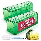 Humane Mouse Trap Pack of 2 - No Kill - Live Mouse Traps Indoor for Home Use - Reusable Rodent Traps for House Indoor, Safe & Effective Rat Trap Outdoor - Humane Mice Control with Cleaning Brush