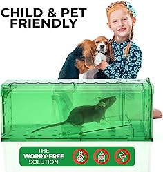 Humane & Effective: The Teal Elite mouse trap is designed to be safe and humane, and does not harm rodents in any way. With extra air holes and plenty of space, it provides an effective solution to pest control while also ensuring the welfare of the animals. Safe: No stress around kids and animals. It's safe and will not harm your kids or pets. Can be used indoors as well as outside. Great for use in your home, garage, yard Easy to Use: Simply place the bait in the designated area and open the spring door. Once the mouse is trapped it will trigger the pedal to close the entry door. Reusable: The rodent traps are reusable, making it super cost effective. After a catch, clean the traps with soap and water and it's ready to be used again. Cleaning Brush included! No Touch Release: Easily release rodents without having to touch it. Simply open the release door and set the mouse free into the wild.