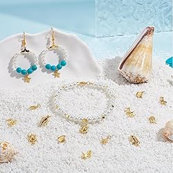 - Beebeecraft Crafted Only For You Beebeecraft 24Pcs 6 Styles Small Shell Starfish Tortoise Charm 18K Gold Plated Summer Sea Animal Necklaces Pendant Charms with Storage Box DIY Jewelry Making Findings Brand: Beebeecraft About our product Color: Gold Material: 18k gold plated brass [18K Gold Plated Brass]: Sea animal charms are made of real 18k gold plated brass, safe to your skin, offer you better wearing experience than stainless steel, polished surface look more gorgeous and upscale, gold plating process makes it more stable and non tarnish. [24Pcs 6 Styles Shell Starfish Tortoise Charm]: What you will receive: 24pcs sea animal charms, 3 shell shape charms, 2 starfish shape charms, and 1tortoise shape charms, each style 4pcs, all packaged in a small box. [Size]: Starfish1: 12x10.5x2mm/0.47x0.41x0.08in, hole: 3mm/0.12in, starfish2: 11x8.5x2mm/0.43x0.33x0.08in, hole: 2.5mm/0.10in, tortoise: 15.5x9.5x3.5mm/0.61x0.37x0.14in, hole: 3.5mm/014in, shell 1: 15.5x7.5x3.2mm/0.61x0.30x0.13in, jump ring: 5x1mm/0.20x0.04in, 3.5mm/0.14in inner diameter, shell2: 10.5x6.5x2.5mm/0.41x0.26x0.10in, hole: 2.5mm/0.10in, shell3: 9x8x3mm/0.35x0.31x0.12in, hole: 2.5mm/0.10in, storage box is about 6.8x5.2x1.1cm/2.68x2.05x0.43in.