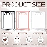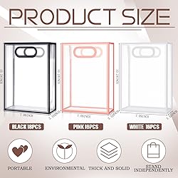 - Features: These transparent plastic gift bags can be applied in various situations. Whether you need something to hold your art supplies, or books. You can also use them as stylish lunch bags, or even for storing craft items at home. These transparent gift bags are reusable, and the clear design means you can quickly and easily identify the contents without having to open them up, the black, white and pink edge make them more stylish. Specifications: Material: PVC plastic Color: clear, black, white and pink Size: about 10.2 x 7.1 x 3.2 inches/ 26 x 18 x 8 cm Package includes: 50 x Clear plastic gift bags with handle Notes: Manual measurement, please allow slight errors on size. The color may exist a slight difference due to different screen displays.