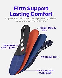 【Lasting Comfort - Semi-Rigid Arch Support】WalkHero Plantar Fasciitis Insoles for men and women offer firm and resilient arch support. These orthotic inserts help maintain your foot’s natural shape, prevent collapse, and evenly distribute pressure, alleviating common foot pains. With full-length cushioning design, they reduce impact and stress on joints. Whether you're walking or working out, they are the ALL-IN-ONE solution you need, ensuring your long-lasting comfort! 【Targeted Relief for Plantar Fasciitis】WalkHero Plantar Fasciitis Inserts are designed to relieve plantar fasciitis with a unique TPU arch support shell. Recommended by podiatrists, this design delivers precise support where you need it most. It also helps relieve pain from metatarsalgia, bunions, arthritis, flat feet, heel pain and Achilles tendonitis. Wear our orthotic inserts and feel relief within 1-2 weeks! (Some may experience discomfort as they adjust to the arch support) 【Less Fatigue - Multi-Layer Cushioning System】WalkHero insoles feature a multi-layer cushioning system with full-length high-rebound foam and high-density EVA layers that absorb impact and relieve pressure on your feet and joints. The forefoot EVA cushion pad targets the ball of the foot, offering extra cushioning for the metatarsal region. Whether you're standing or walking for long periods, this design keeps your feet supported, comfortable, and fatigue-free throughout the day 【Ideal for Everyday Use】These size-to-fit orthotic insoles are designed for 24/7 wear, fitting a variety of shoes, including work boots, sneakers, casual shoes and leather boots. The non-slip top fabric and the bottom multi-directional pattern enhance grip and stability. Whether you're standing, walking or commuting, WalkHero has you covered 【Exceptional After-Sales Support】Our after-sales service reflects our devotion to quality and comfort. Have questions or concerns? Reach out anytime—we are here to make every step comfortable. Try your new arch supports and start enjoying lasting comfort and support today!Some may feel discomfort during the first 1-2 weeks as they adapt to the orthotic insoles. Begin by wearing them for 2-3 hours daily, then gradually increase usage to allow for a smooth transition