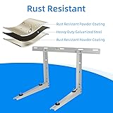 Universal Size-The mini split bracket compatible with most mini split air conditioners, ductless air conditioner, heat pumps, and AC compressors ranging from 9000-36000 BTU, and support up to 350 lbs. Robust Construction-The mini split wall mounting bracket is constructed with high quality galvanized steel and epoxy painted. Excellent Protection-Keep the mini split in an elevated location to prevent dust, snow, debris, flooding, vandalism, grass clippings from entering. Suitable for all climatic conditions. Damping Capacity-The mini split mounting bracket uses a reliable rubber shock absorber to absorb vibrations, and the correct distance from the wall ensures air circulation. Easy to Install- The installation of our mini split bracket is efforlessly. package comes with all necessary hardware, including folded AC brackets, rubber pads, bolts, washers, nuts, and concrete anchors.