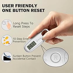 【Effortless & Intuitive Operation】Just get the simplicity of step counting with our 3D pedometer for walking. No fuss, no hassle – just open the package and you're ready to go. Say goodbye to complicated setups and Bluetooth connections; this 3D pedometer for walking is your easy-to-use companion that effortlessly tracks your every step. 【Precision Tracking with 3D Tri-Axis technology】Harnessing the power of advanced 3D tri-axis sensor technology, our clip on 3D step counter delivers unparalleled accuracy. Whether you're walking up, down, or sideways, the sensor of the 3D step counter ensure precise step counting from any orientation. Simply press and hold the button to reset the count, keeping your tracking accurate and reliable with this 3D step counter. 【Error-Free Step Counting】Bid farewell to inaccurate step counts with our 10-step error prevention feature on the step tracker. Designed to eliminate irregular movements from being counted as steps, this function ensures that only true steps are recorded. With this step tracker, you can trust that every step matters. Notes: Unsteady carrying, indoor only, stationary movement, hand-held, slow or light steps may affect the accuracy of the step tracker. 【Versatile Attachment Options】Adaptability is key, which is why our 3D pedometer for walking comes with a removable clip and spring carabiner. Whether you prefer to wear it around your waist, slip it into your pocket, or hang it from your backpack, our 3D pedometer for walking seamlessly integrates into your lifestyle, ensuring accurate tracking wherever you go. 【Smart Battery Management】Enjoy peace of mind with our included battery, offering long-lasting power. Plus, our step counter is equipped with one-minute auto-sleep functionality, conserving battery life during periods of inactivity. Like a diligent companion, the step counter springs back to life when you do, ensuring you never miss a step.