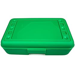 - From colored pencils and crayons, to pens and markers, even paint brushes and scissors. Anything you need to keep your desk clear; this box can hold it. Our pencil boxes are made of super durable plastic to ensure your belongings are protected from water, dust, unexpected drops, or any other disasters that might arise. Each box measures 8 in. x 5.41 in. x 2.4 in. This makes them perfect to slide in a crafting bag or backpack, or even to store in a desk or cubby. The flexible snap on the front makes this box super easy to open and close while still staying secure and not breaking open when dropped.