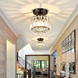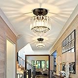 Piepooye 2 Pack Small Crystal Semi Flush Mount Ceiling Light Fixture Modern Black Mini Round Chandelier Metal E26 Ceiling Lamp for Hallway Bathroom Entryway Kitchen Closet