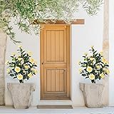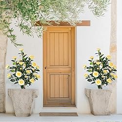 Yepdin 2 pcs Pack Yellow Artificial Camellia Tree - 39 inch Faux Plants with White Planter,3.2 Ft Artificial Plants Indoor Outdoor,Housewarming Gift