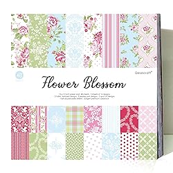 Desecraft 48 sheets 12x12 Scrapbooking Cardstock Decorative Paper Pack - Flower Blossom - for Card Making Journaling Planner Origami Scrapbook Paper Scrapbook Materials Supplies