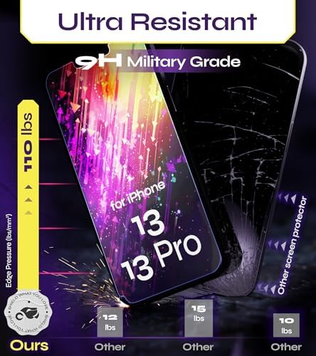 - ULTRA RESISTANT: Military-Grade Tempered Glass offers unmatched Shatterproof and Scratch-Resistant Performance; ideal for iPhone Screen Protector 13 & 13 PRO and for tempered glass iPhone 13 & 13 PRO - Ultimate Protection