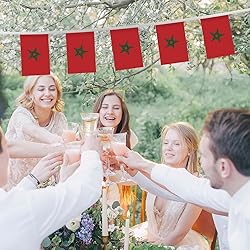 32FT Morocco Pennant Small Flag Bunting,30 PCS Mini String Banner Stripes Moroccans Decor Rectangle for Holiday Restaurant Home Party School