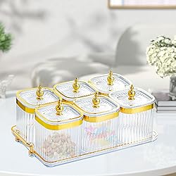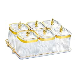 - Description: - 【Dried Fruit Tray】: Dried fruit snack serving plate is made of PP material, sturdy structure and . - 【Multifunctional】: Divided serving dishes can be used to store nuts, dried fruits, snacks, fruits, appetizers, candies, etc. and can also be used as a condiment box. - 【Portable】: Candy nuts dish with lid, silicone loop can effectively seal the food or seasoning inside the container, dustproof, with stand, easy to move. - 【Multi Grids】: Multiple compartments dried fruit tray, can be placed individually to avoid mixing and keep the table clean and tidy. - 【Widely Used】: Food storage container is suitable for home, kitchen, dining room, restaurant, party, living room, office and other occasions. Size Chart: 4 Grids: 18.5cmx22cmx11.5cm/7.28inchx8.66inchx4.53inch 6 Grids: 31.5cmx18.5cmx11.5cm/12.40inchx7.28inchx4.53inch Package Includes: optional 4/6 Grids Dried Fruit Plate Note: Please allow slightly errors due to manual measurement and different monitors.